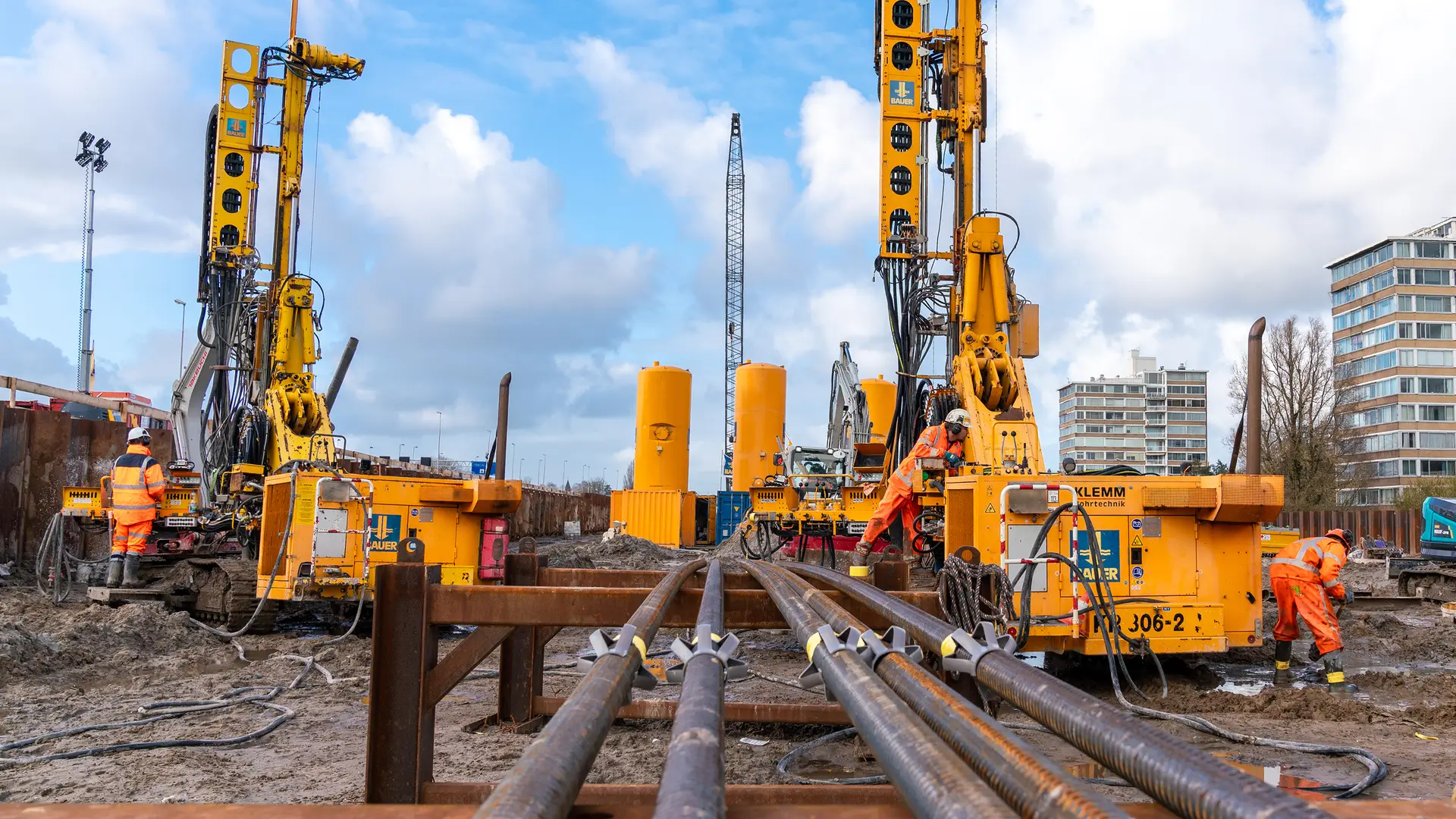 Time to get electric! For the expansion of Highway A9 in the Netherlands, our team from Bauer Spezialtiefbau is using the innovative electric drilling rig KR 806-3E from KLEMM Bohrtechnik GmbH for the first time. The last construction section of 11.4 km includes the installation of 12,000 anchor piles in total with a depth of up to 33 m. Particular challenges here: limited spatial conditions and high groundwater level. This electric drilling rig in use for the first time here, equipped with battery and grid connection, has already executed drilling cycles autonomously and operates with low noise emissions. These qualities are ideal for use in cities, where ongoing traffic and environmental protection are the top priorities.